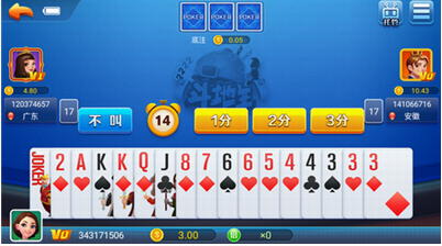 叫分环节:在发牌过程中,会有叫分环节。玩家根据自己手中牌的好坏,依次叫分,叫分越高,获胜后的奖励也越高。叫分结束后,叫分最高的玩家成为地主。