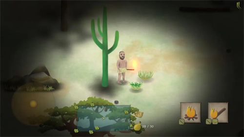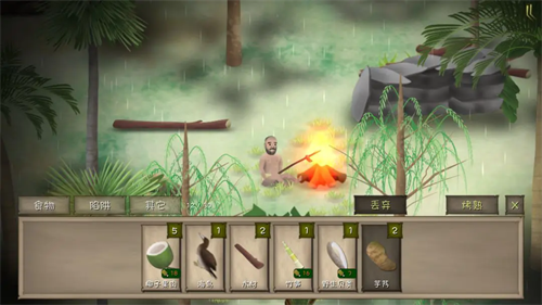 游戏中有不少投掷类工具,石头,竹叉,弓箭。有时候你会碰到一些猎物,如草原上的兔子,池塘里的鱼。你需要用你的投掷工具瞄准猎物进行猎杀,当然不同的猎物需要不同的投掷工具。