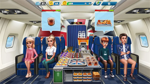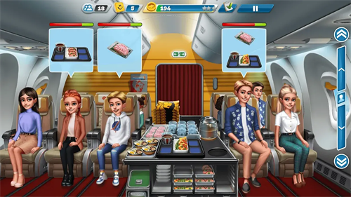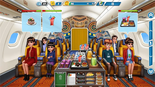 2、制作好的美食后可以售卖给飞机上的乘客换取金币。