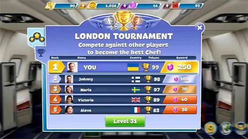 2、烹饪美味的餐点和甜点,并在这个免费的高度上瘾的时间管理烹饪游戏中将其用于商业航班;