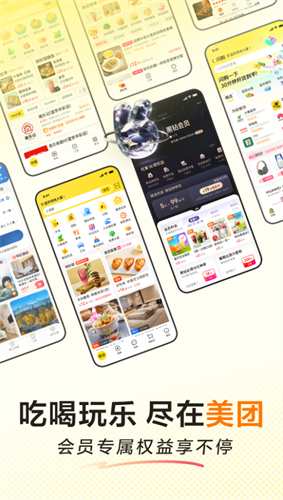 《美团app下载官方安装最新版》是一款功能强大实用的网上团购的软件,软件是超多用户安装使用的生活服务app,提供超多便捷的服务,吃喝玩乐样样都有,美食外卖、旅游出行、商品购物等等,超多门店、实用攻略提供给你,同时软件满足广大人民的需求,里面包含了很多功能,美食、电影演出、酒店住宿、休闲娱乐、外卖、亲子乐园、学习培训、周边旅游、生活服务等等,提供各城市美食、酒店、娱乐、电影等优惠信息,为不方便出门、找寻不到美食、不知道哪里好玩的您提供了方便,并且用户可提前在软件上预定座位,提前排队不再需要等待;半夜饿了想吃夜宵就上应用轻松一键外卖订餐水果宵夜马上到家;出去旅游前上美团,酒店旅行攻略一条龙服务马上给你解决。