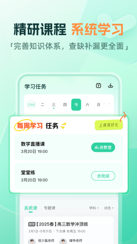 2、高中课程:高中的重点知识课程全部都给用户进行提供,报名就可以进行学习。