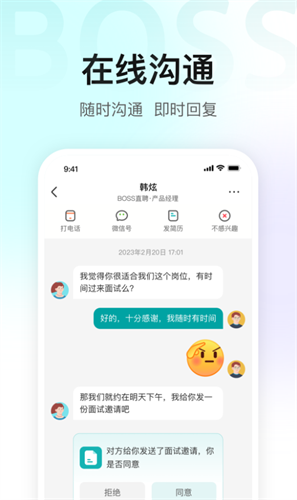1、随时随地,直接开聊。聊爽就约 ,拍板快,入职快。