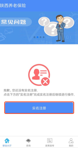 登录成功后必须进行实名注册, 如下图,点击实名注册,软件将自动跳转至实名注册界面