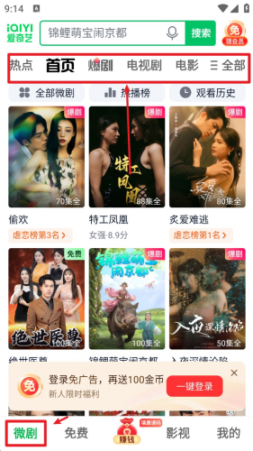 3. 点击首页底部“微剧”进入短剧专区,浏览热播榜单与各类微短剧精选内容。