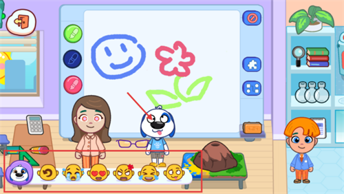 2、进入学校场景后,利用场景内的道具进行互动和创作,体验游戏玩法。