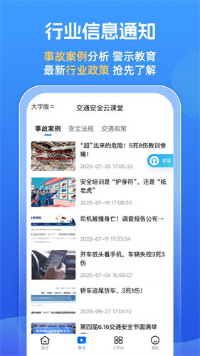 6、实时行业资讯推送:整合政策解读、事故案例与车友动态,助力驾驶员掌握前沿安全资讯。