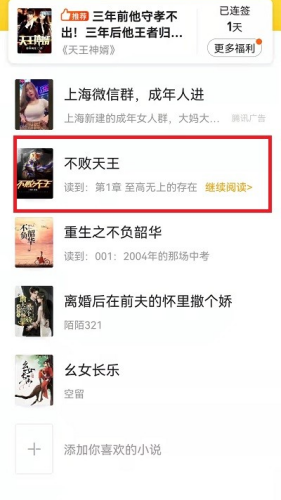 如果是书架中的小说,我们就需要在书架界面中点击打开小说。