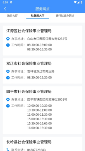 3、在首页的“服务网点”中,你可以用来查询社保局位置以及工作时间电话等。