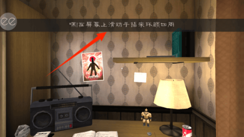 1、进入场景后,根据指引在屏幕中滑动手指,即可自由转动视角观察周围环境。