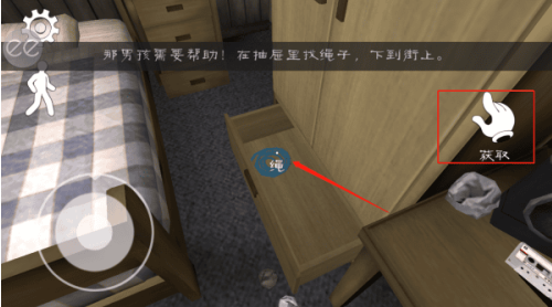 4、注意衣柜下方的抽屉藏有绳子,将屏幕中的白色光标对准后点击,即可成功拾取该道具。