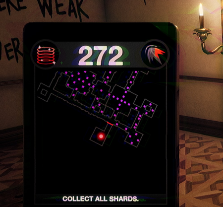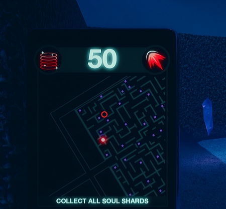 我在地图上画的红色圆圈是其中一个观察者最有可能生成的地方,一直关注他们。如果它们没有直接在那里生成,无论如何都要继续寻找(仅供参考,可以通过墙壁观察它们来阻止观察者)。收集正后面的碎片,前面的碎片,观察者前面的最后一个碎片(最后一个完全被尖刺包围,所以要小心)。在那之后,其他观察者应该足够接近,开始给你焦虑,但不要担心。速度提升到迷宫的角落,跑过整个墙壁边缘,将视线从观察者身上移开约2秒钟,然后回头看向边缘的其余部分。请记住陷阱,所以不要漫无目的地奔跑。峰值在全球范围内同时消失,因此跟踪会有所帮助。他们的计时器是关闭,等待大约三秒钟,听到金属叮当声,尖峰再次上升。现在所有的观察者通常都在同一区域,你可以运行关卡的整个外边缘并收集碎片,然后向内移动其余部分。使这变得容易的最大部分是始终记住您正在寻找的位置并防止它们移动。除此之外,它主要是相信自己在不看陷阱的情况下告诉自己陷阱离你有多远。收集到最后一个碎片后,所有的观察者都消失了,你可以在迷宫中自由移动,寻找任何地方,但请记住,收集碎片后陷阱仍然会激活。