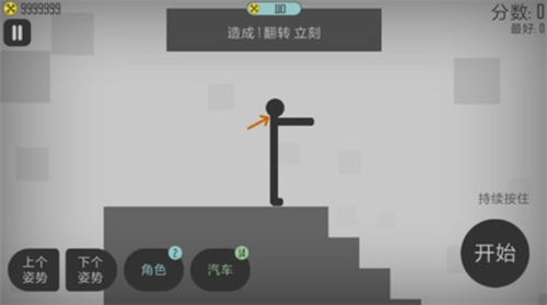 玩家可以尝试安排好火柴人自己的独特姿势,然后让火柴人自然下落,观察其下落过程和结果。