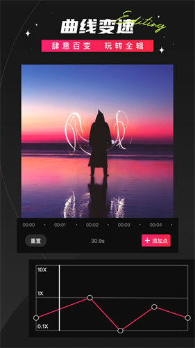 调整视频播放速度。0.2秒精确度的变速调整,加速的变声趣味,慢速的鬼畜特效。