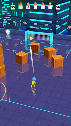3、火柴人球员完成帽子戏法后触发360度旋转庆祝,倒地铲球时呈现滑稽的弹簧床效果。