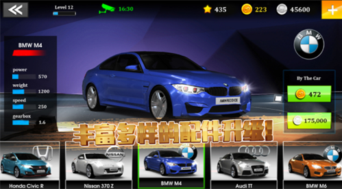 4、赢得比赛胜利可获得金钱,用于购买丰富的赛车;