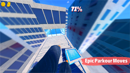 3、感受史诗般的跳跃,快速滑动和碎玻璃的刺激,从一个建筑物边缘跳到另一个建筑物边缘,并以第一人称视角选择最佳路径以到达终点。