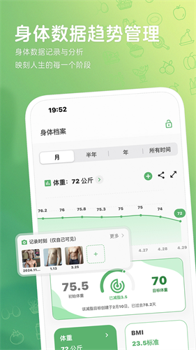 食卡卡在软件中就可以建立自己的身体档案来记录自己的身体数据变化。