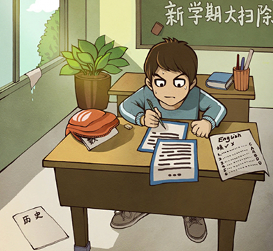 4、不仅仅是作业抄袭,他的另一门功课也有问题。点击课桌上的【英语作业】。