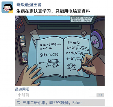1、点击朋友圈图片下面的【品游网吧】,我们就知道他不是在自己家里。