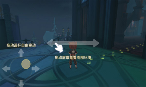 3、在关卡内使用左下角的虚拟摇杆移动角色,同时拖动屏幕查看周围环境。