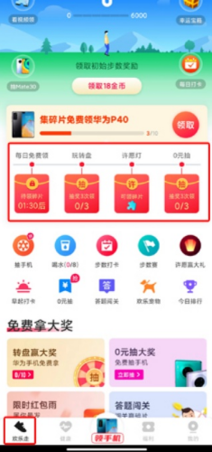 1、下载安装好软件,进入欢乐走页面:用户通过任务来领取碎片。