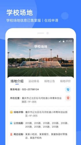 5、支持直接检索相应的学校场地,然后查看场地的信息,全面的获悉。