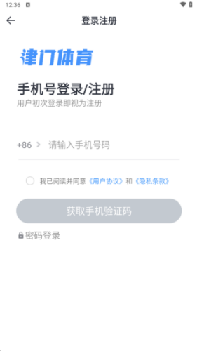3、进入软件登录界面,用户输入手机号和验证码就可以注册并登录软件了。