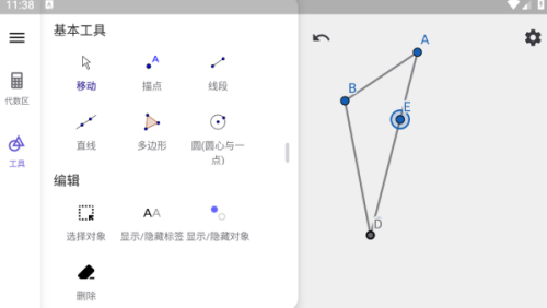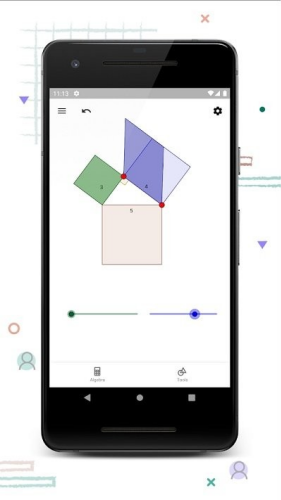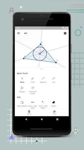 几何画板手机免费版是一款功能强大的数学软件,用户可以快速创建图形,支持各种几何图形绘制,轻轻松松构造三角形,拖动点,画平行线,在上面能够画出最为标准的结合图形,轻松的创建你自己所想要的几何图形内容。用户可以在上面画点、向量、线段、直线、多边形、圆锥曲线等,甚至是函数,之后您还可以直接修改它们的属性,通过修改个别数据来达到您想要计算的结果,不仅仅可以来轻松的根据函数来完成对图形的调整,并且还能来根据不同的图形叠加来完成超多的连线,让你画图不在难受。