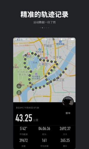 6、用户运动的所有数据都能清晰记录,包括平均时速和总的运动时间。
