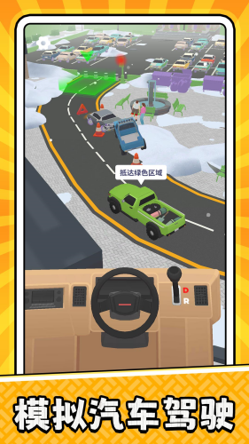 2、每一个关卡的目标,都是需要将车辆驾驶到绿色的区域,去完成挑战的。