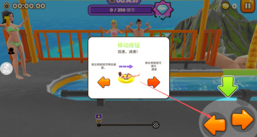 2、正式进入挑战,我们需要点击右侧的左右按钮,去控制着我们的加速和减速的。