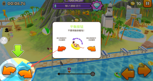 4、整体画面充满清凉氛围,蓝天泳池彩色滑梯构成鲜明场景,搭配轻快的音效让玩家在竞速之余享受视觉与听觉的双重放松。