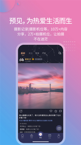 3、“预见”社区支持用户分享摄影作品、交流机位经验,形成摄影爱好者生态圈。