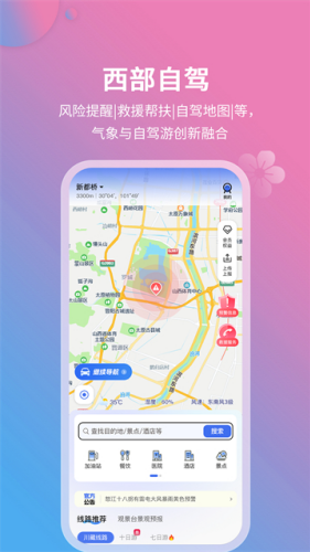 5、整合天气预报、空气质量监测、生活指数(穿衣、紫外线)及自驾安全服务,一站式满足出行需求。