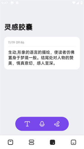 3、点击下方工具栏灵感胶囊,可以用语音和文字模式记录灵感。