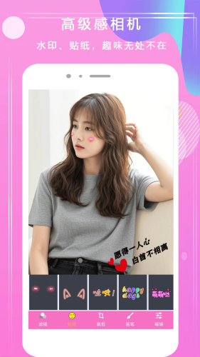 6、手机自拍超好看,我们还能添加贴纸,丰富画面。