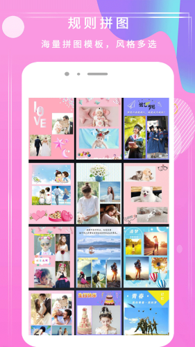 任意选择拼图模板并选择多张图片拼接在一起提升质感。