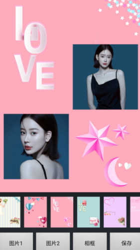 1、不同的素材灵活使用,让照片更加的精致,支持一键分享。