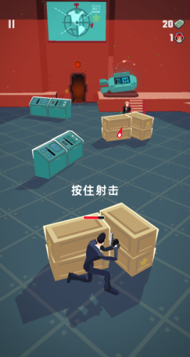 1、进入游戏后,你可以对面有2个敌人,按住射击,快速击杀敌人。