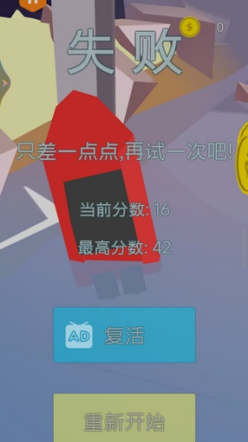 4、未完成驾驶任务,玩家可以通过观看视频获得一次复活机会或者点击重新开始。