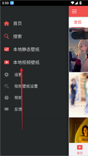 3、下载完成后在首页点击三条横线,点击本地视频壁纸。