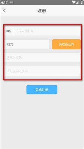 输入手机号、验证码和密码,点击“完成注册”,就可以注册成功了。