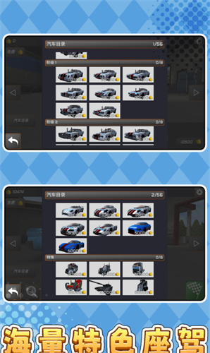 1、56款可解锁车型各具特色,速度、重量、抓地力等属性独立设定,从家用车到超跑,满足不同玩家驾驶偏好。