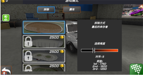 2、游戏模式包含了拆除和赛车,每一种模式完成了之后获得的金币都不同。