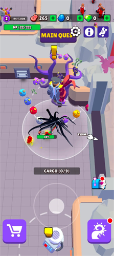 2、游戏的地图区域分布着很多的怪物,还得快速将其吞噬,得到足够的能量后就能成功升级。