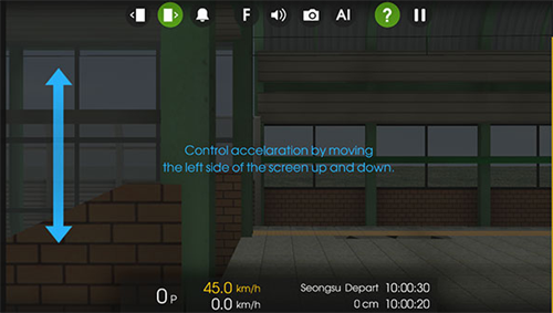 -玩家将右边的黄色减速条拉为0,将左边加速条拉为1~5档都可以,列车就会开动啦,到达目的地之后需要停在标准线之内才能打开车门接送乘客,注意不要错过站台了哟!