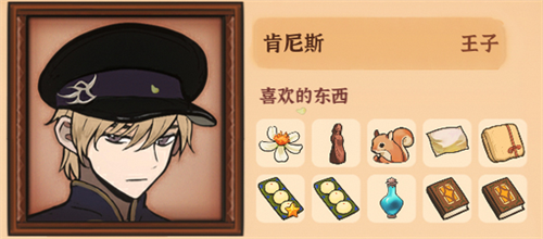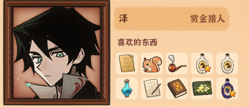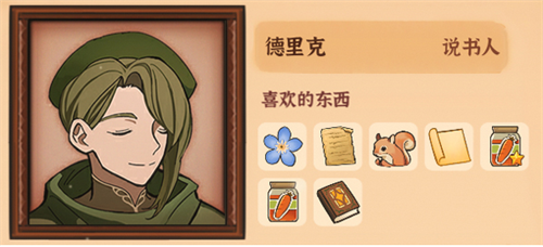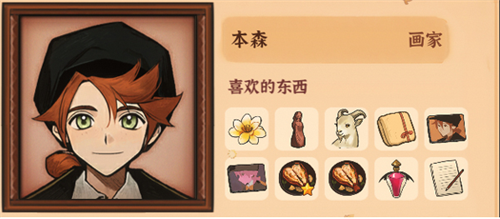 野花、火山女神木雕和松鼠可能是他的喜好。送给他这些会增加好感度。