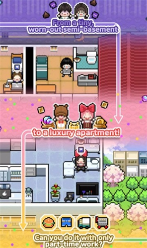 沉浸式独居体验:你将从最真实的起点开始——通过打工赚取微薄的收入,支付学费和生活费。游戏中的每一个选择,都将直接影响你的人生轨迹。