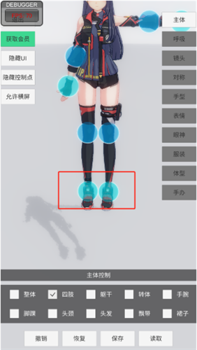 3、点击四肢,青蓝色的球可以控制四肢的移动